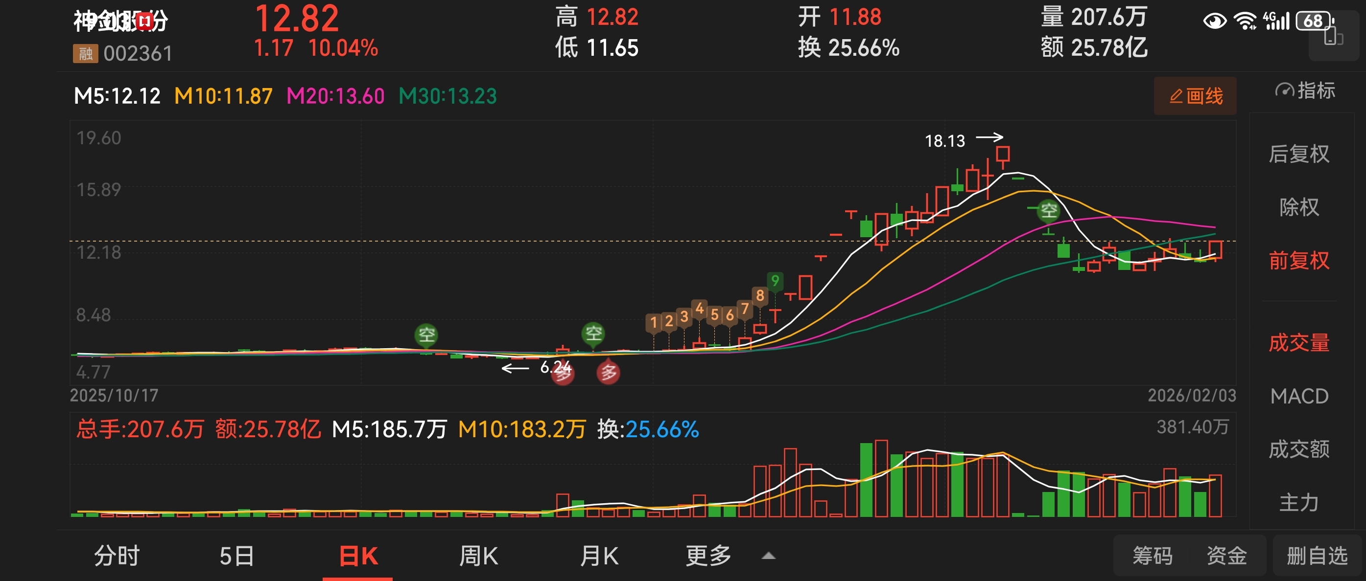$神剑股份(SZ002361)$ 这票我也分享过,明天关注一下上板行情,如不能连板,要减仓了,中户指导的票,你懂的!
