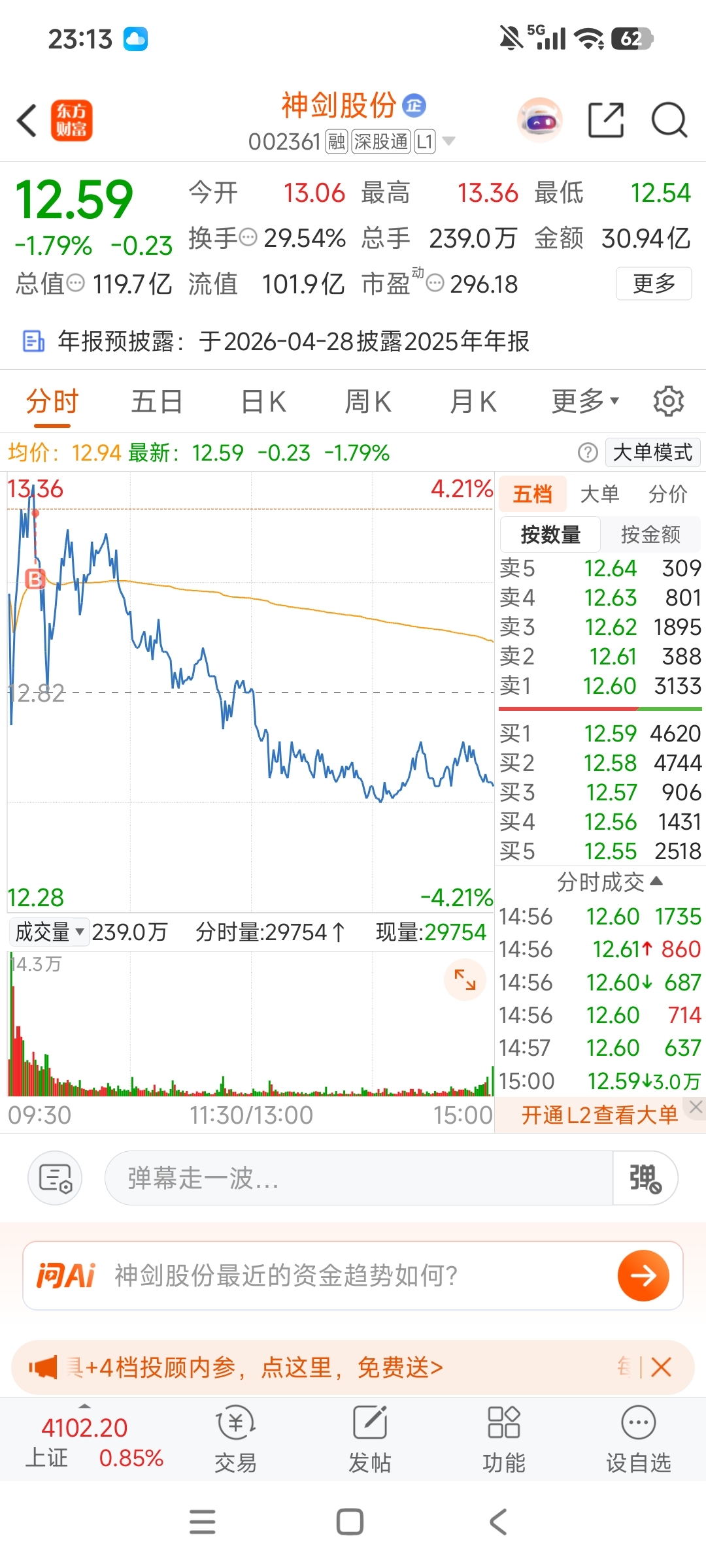 $神剑股份(SZ002361)$ 还有没有比我高的13.27进的