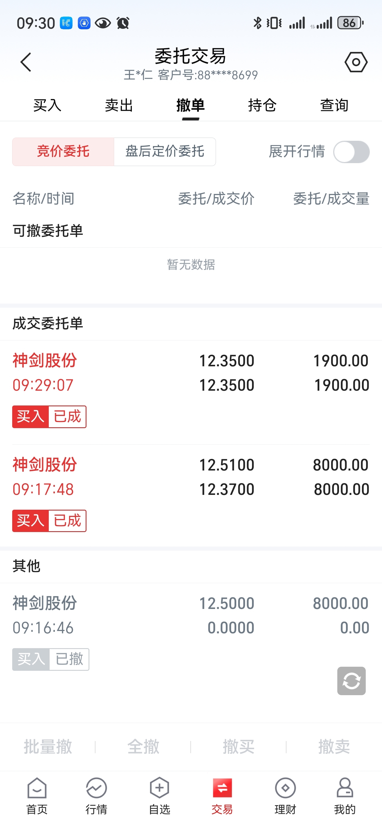 不撤单~昨天12.8卖出10000股、今天低开买进、接下来听天由命了!愿每一次操作都会降低成本、其他不去管!待会如果红盘、在卖出就是了