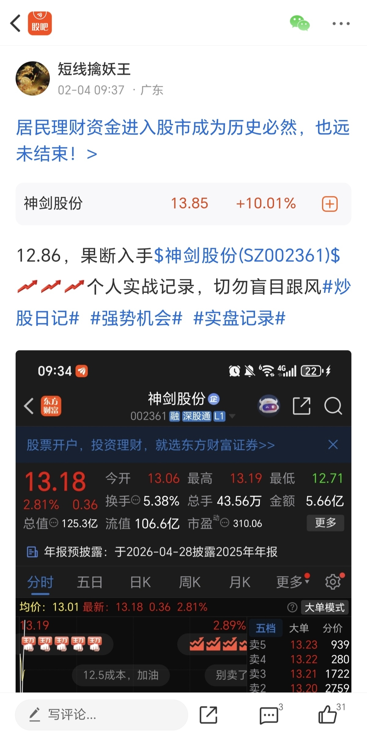 温馨提示: 1.根据《证券法》规定,禁止编造、传播虚假信息或者误导性信息,扰乱证券市场;2.用户在本社区发表的所有资料、言论等仅代表个人观点,与本网站立场无关,不对您构成任何投资建议。用户应基于自己的独立判断,自行决定证券投资并承担相应风险。《东方财富社区管理规定》