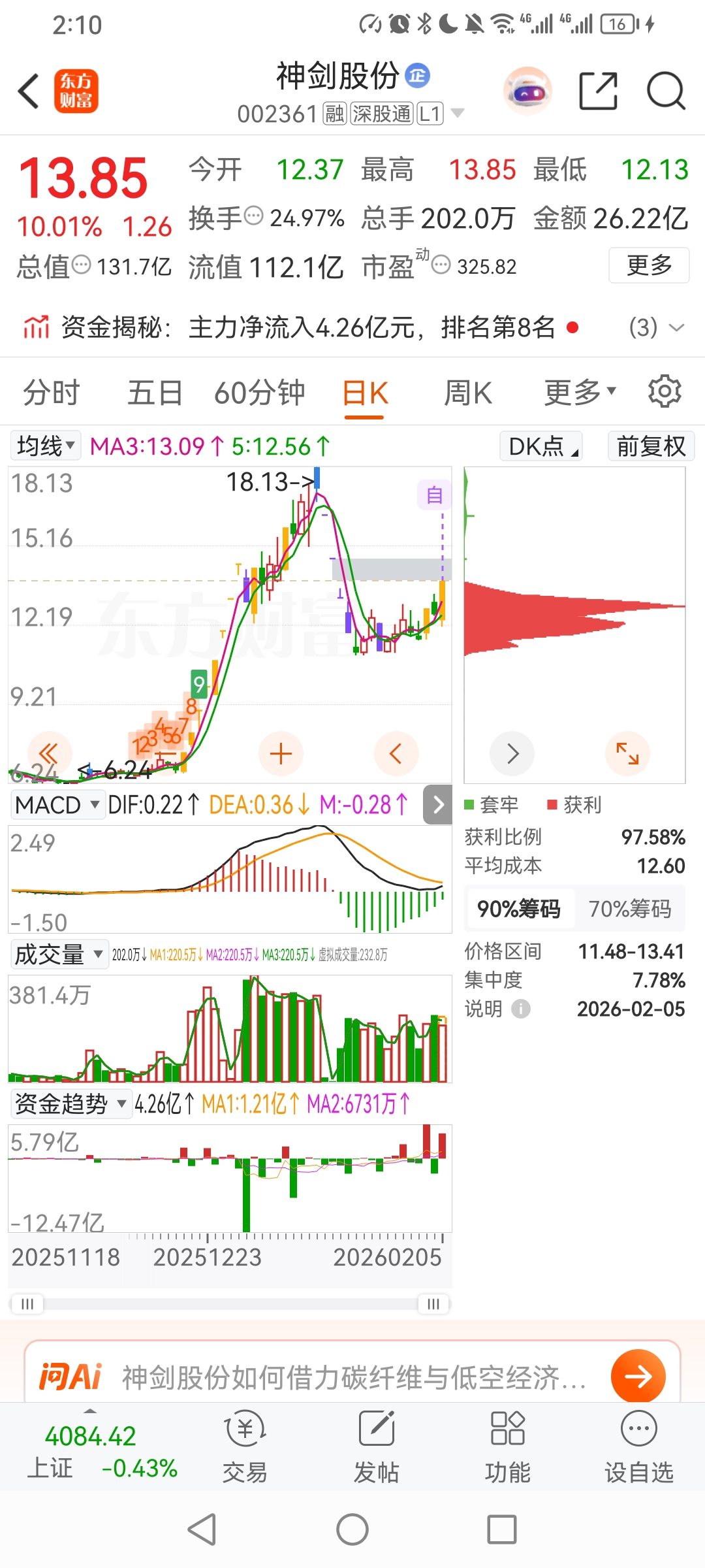 军哥神剑股份加仓,锁定筹码,龙头。大涨持有。