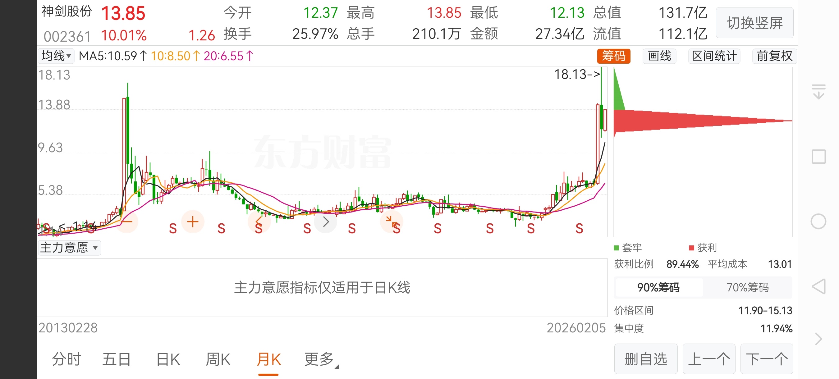 $神剑股份(SZ002361)$ 神剑压根没啥抛压了 , 前期套牢盘都走的差不多了,趋势不错