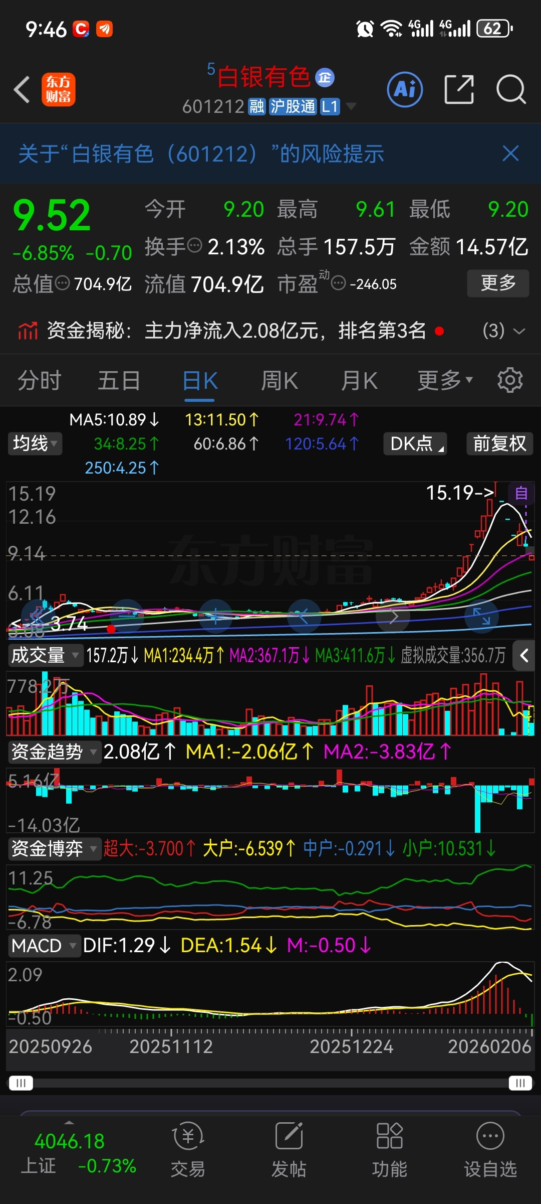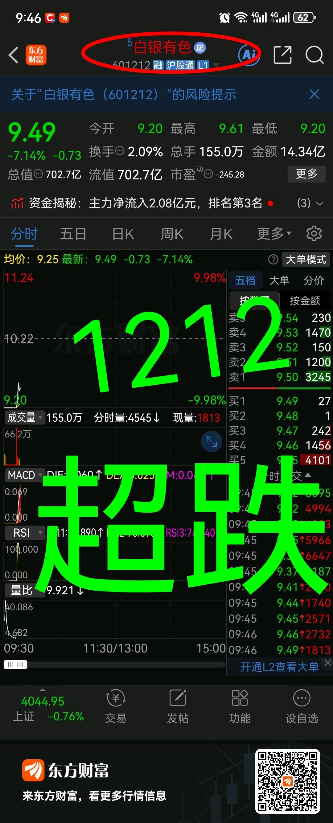 有色 超跌 如期炸板 601212 白银有色
