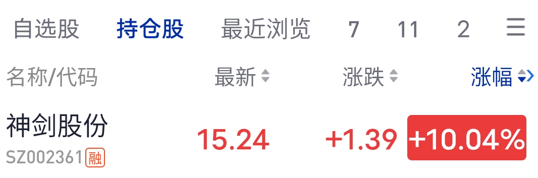 $神剑股份(SZ002361)$ 今天一板 周末快乐