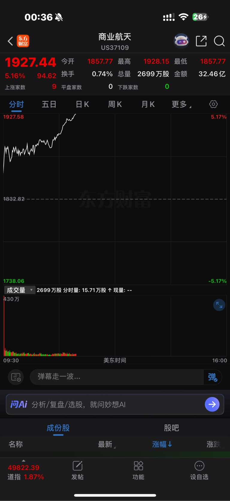 $神剑股份(SZ002361)$ 美股商业航天疯了
