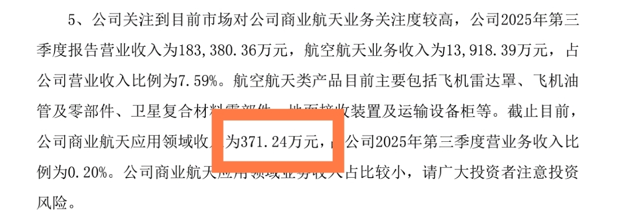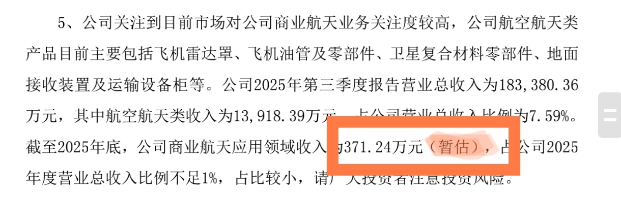 $神剑股份(SZ002361)$ 12.30属于30日超100% 【严重】异常波动,2.6日是正常异动公告,其中关于商业航天收入不同点在于,12.30是确定值371.24万元,而2.6日是暂估,说明后面1月份存在新增收入,也即有新订单,但具体收入应该属于合同履行过程中。