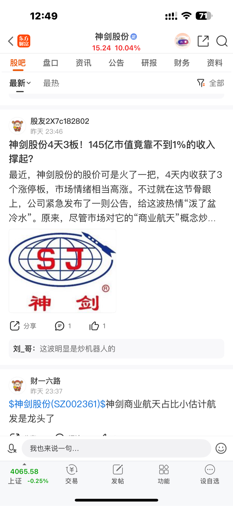 温馨提示: 1.根据《证券法》规定,禁止编造、传播虚假信息或者误导性信息,扰乱证券市场;2.用户在本社区发表的所有资料、言论等仅代表个人观点,与本网站立场无关,不对您构成任何投资建议。用户应基于自己的独立判断,自行决定证券投资并承担相应风险。《东方财富社区管理规定》