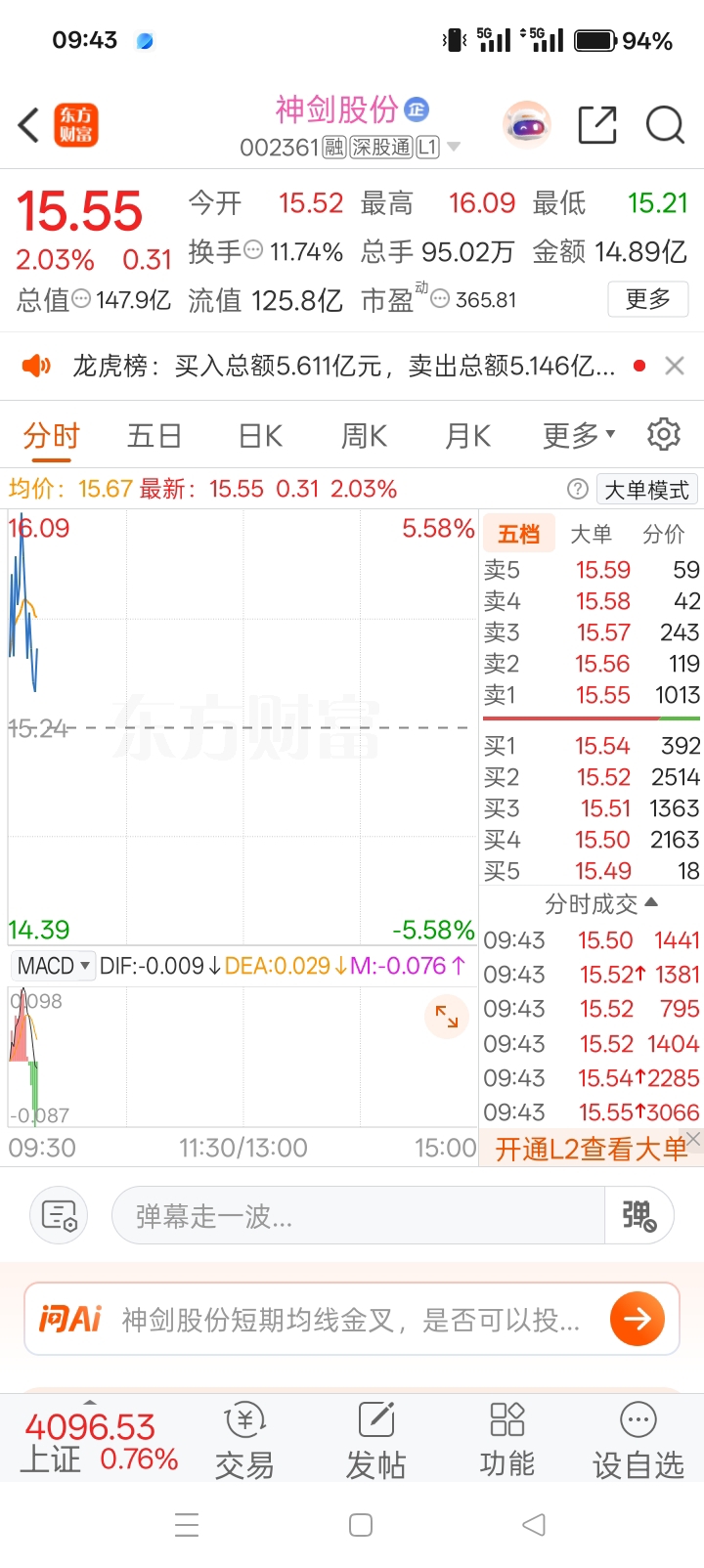$神剑股份(SZ002361)$ 15.5附近继续上车开怼,等待起飞吃肉!