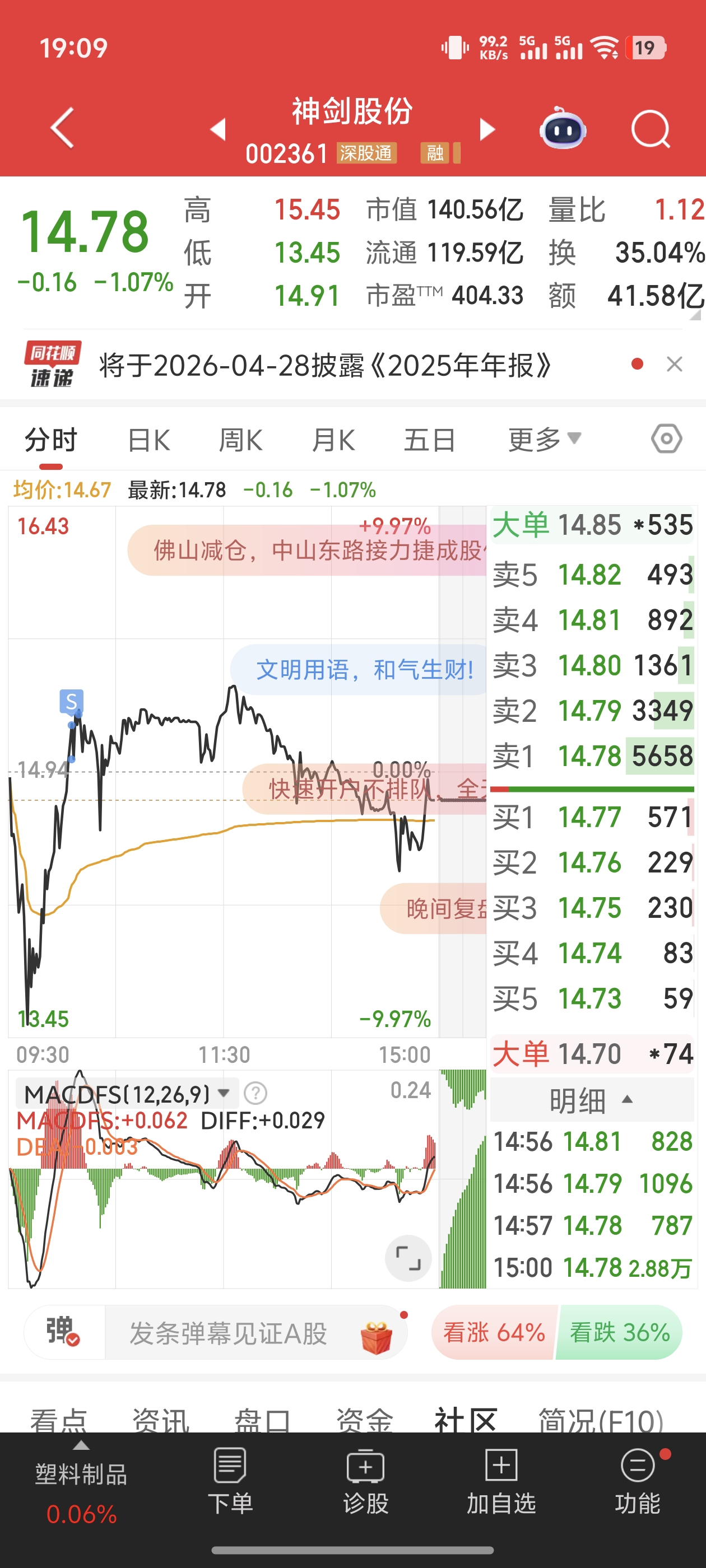 $神剑股份(SZ002361)$ 没卖在高点,剑哥确实牛