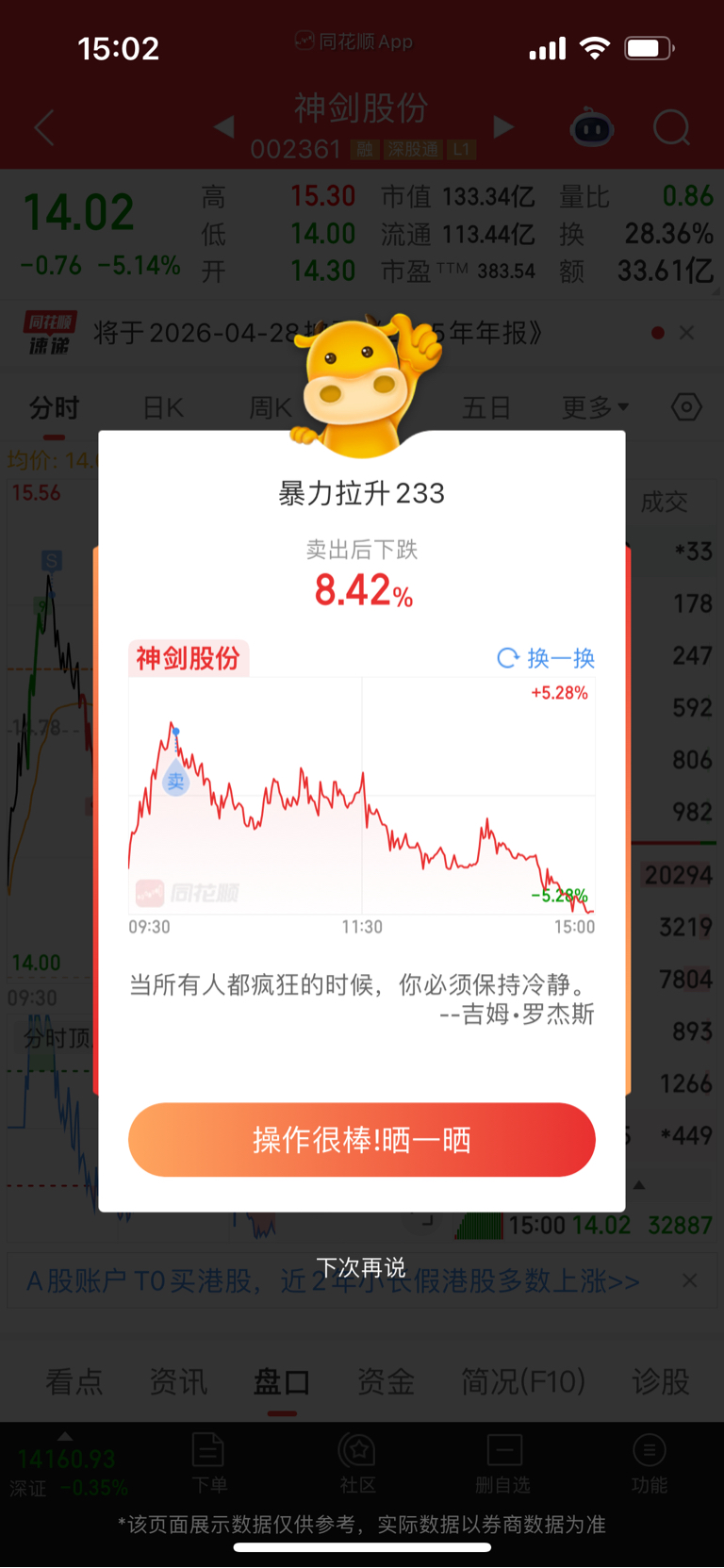 $神剑股份(SZ002361)$ 还好跑了