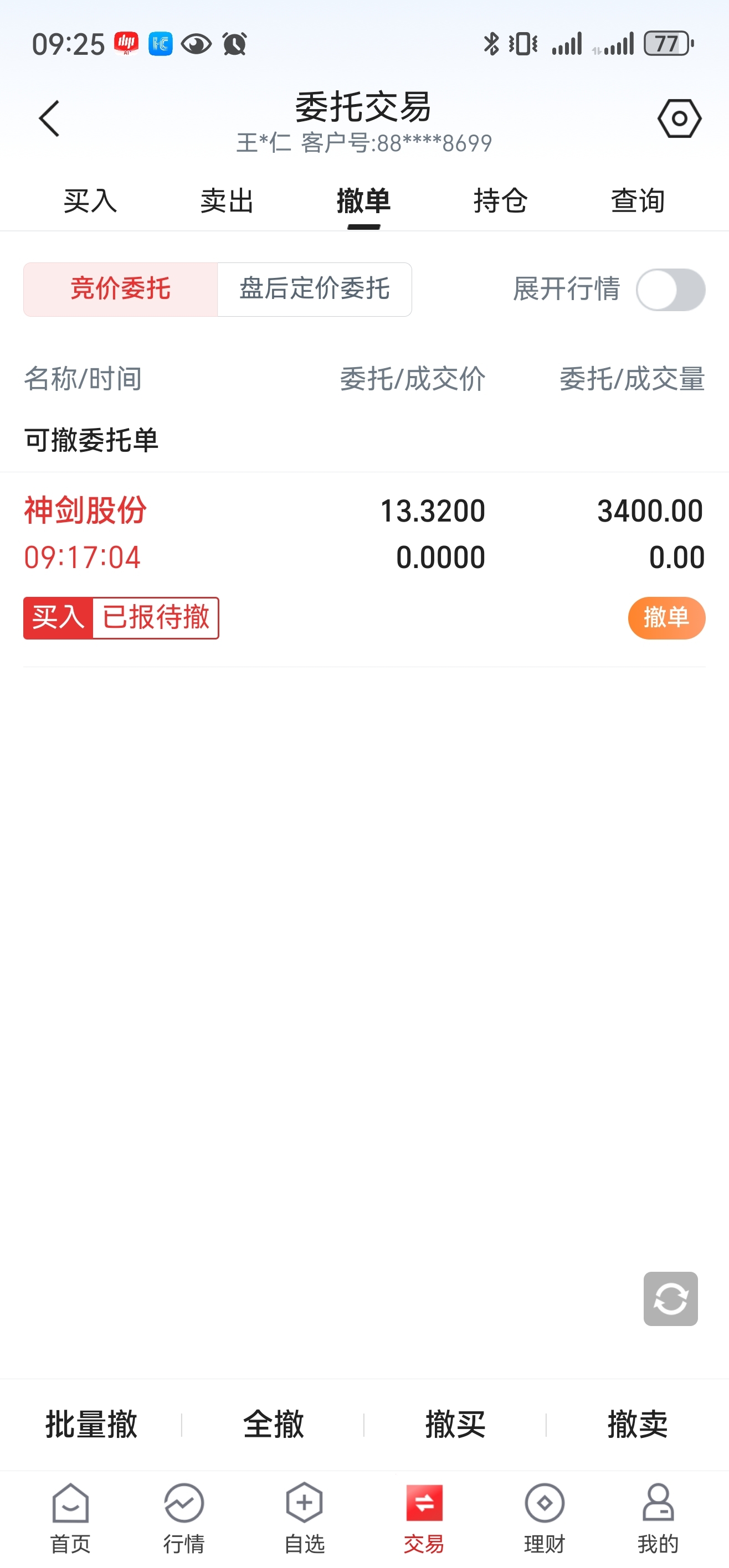 楞你吗、没买进啊!我已经挂高几分了!不然就可以T出来、今天就下班了....成本又会降低!K