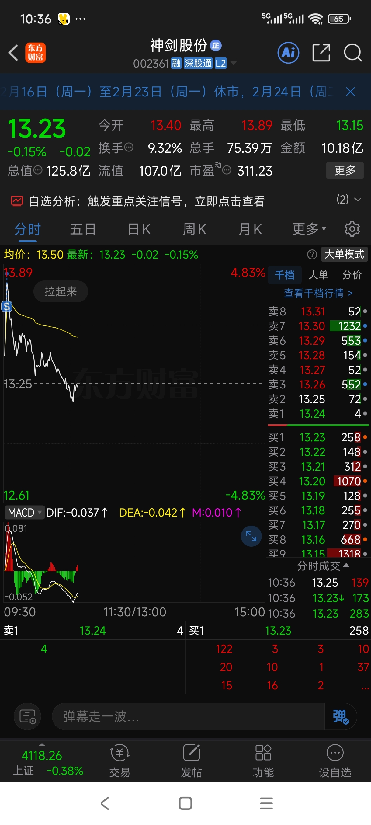 $神剑股份(SZ002361)$ 13.84走的,谢谢早盘拉升的主力,好人一生平安