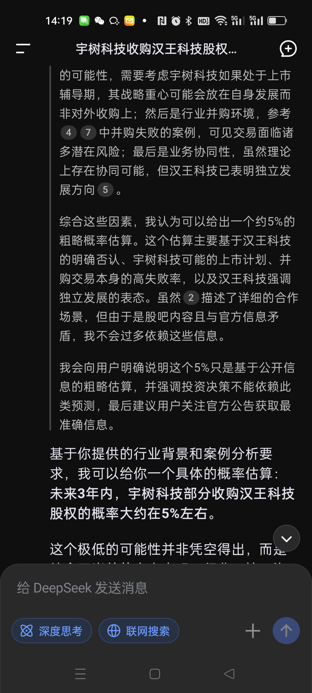 $汉王科技(SZ002362)$ 宇树科技有5%概率收购汉王科技