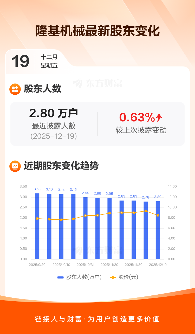 隆基机械:截至12月19日最新股东户数2.80万户,较上期增加0.63%