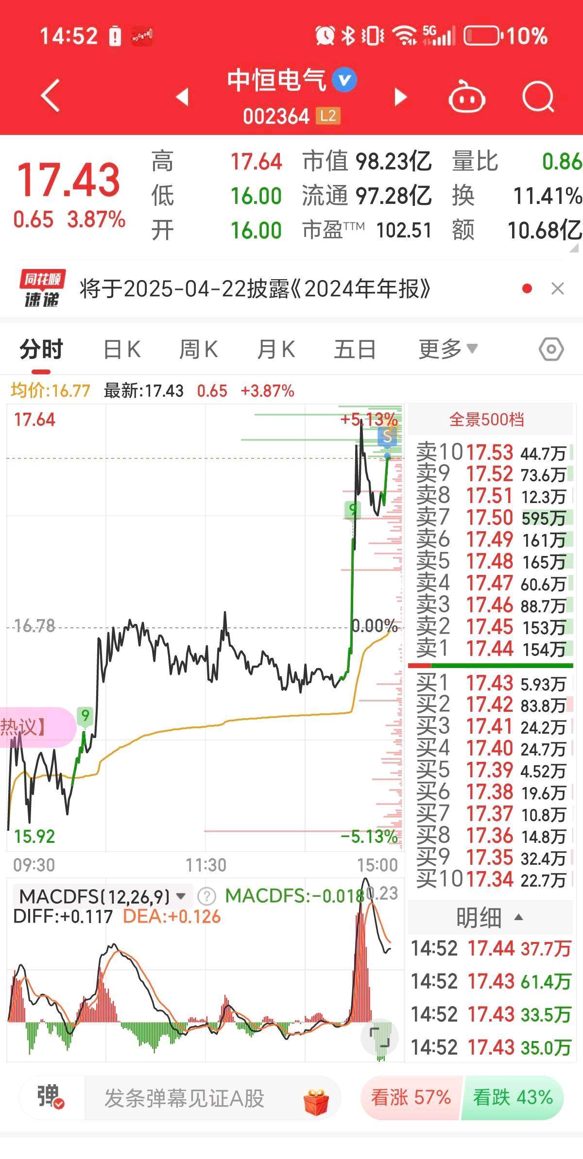 $中恒电气(SZ002364)$ 两天赚了16个点,走了,留下的发财,明天低开再接回来