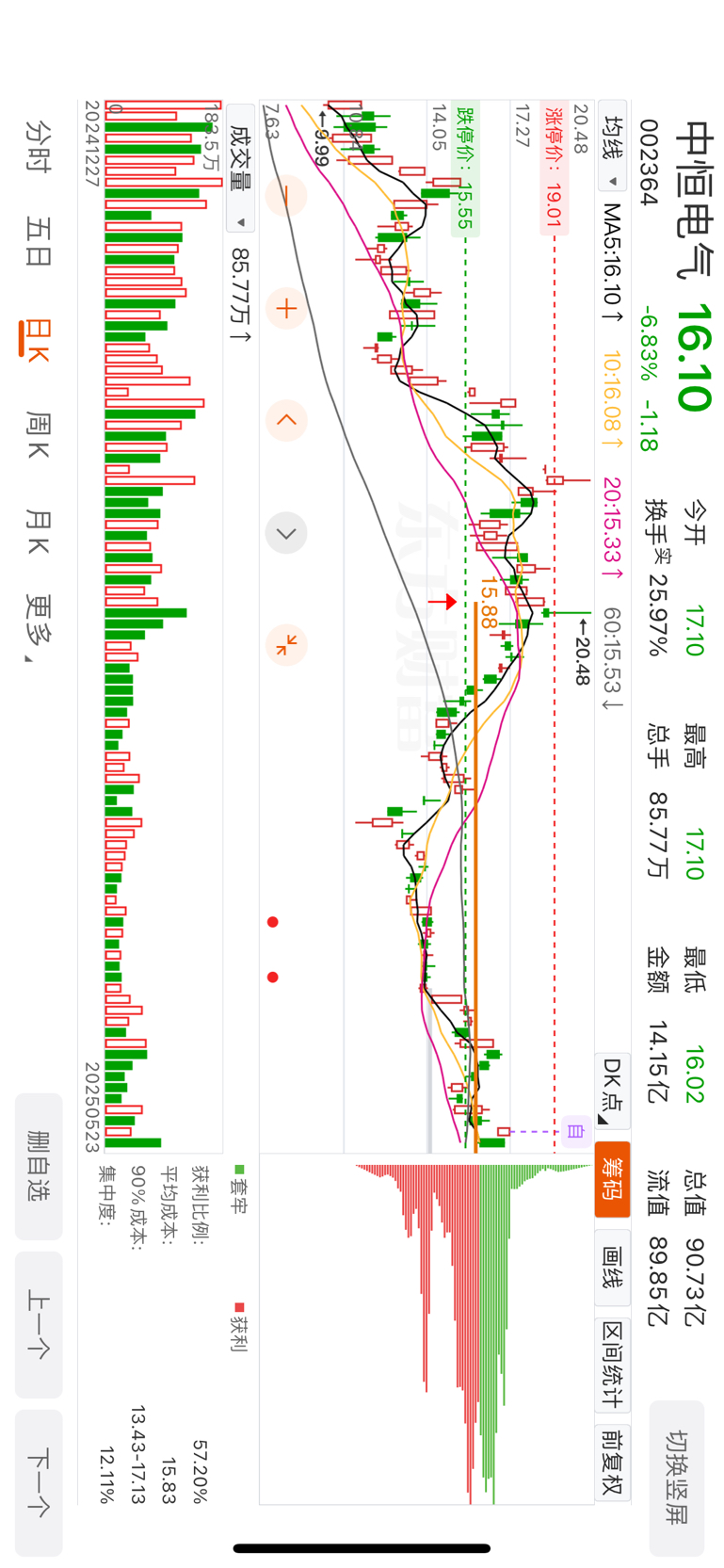 $中恒电气(SZ002364)$ 支撑位15.88,不破支撑位,趋势还是向上,一但破了支撑位,择要到15.4才能反转