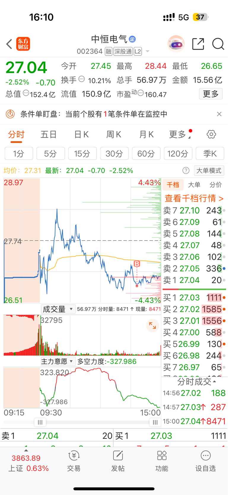 $中恒电气(SZ002364)$ 早盘错过了高点就没有选择减仓,尾盘反而加仓干!全天缩量老庄和游资轮流T,主力在保证做T利润下完成震仓洗盘,明天震荡向上修复10日线!考虑到中恒的振幅,一根中阳线就会完成所有的修复预期!被深套的朋友们安心持有就行!只要13日的低点不破,就表示向上趋势还在,四分之一仓位滚动进行高抛低吸!