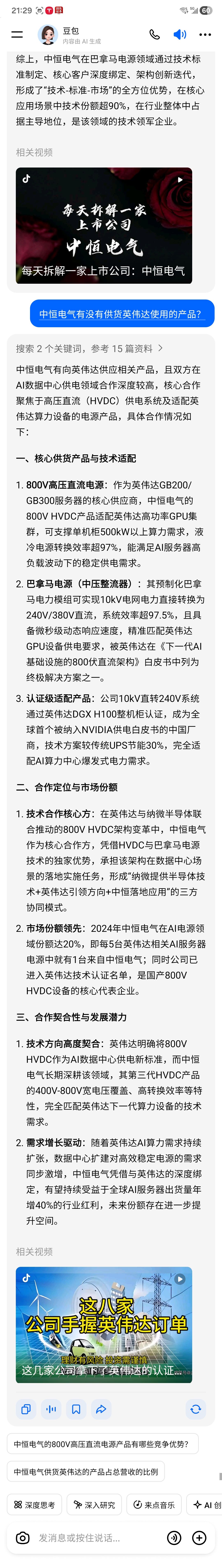 $中恒电气(SZ002364)$ 中恒电器的英伟达配套产品