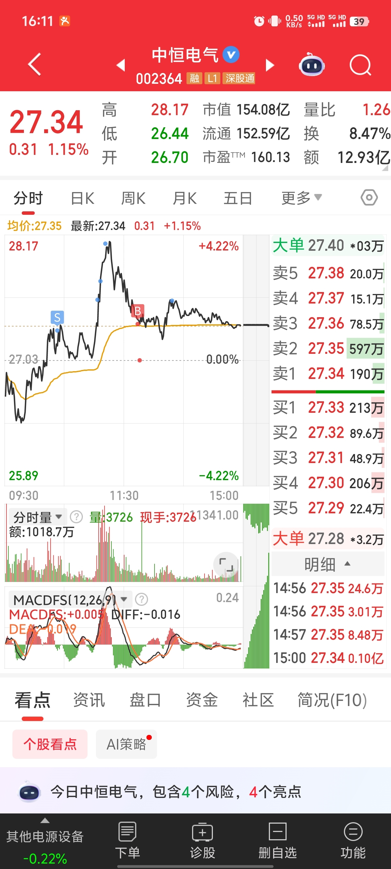 $中恒电气(SZ002364)$ 在拉升的时候要敢于出手卖,如果拿不准可以分段卖,别等,因为现在套牢盘不少,直接突破几乎不可能,所以量能不够的情况下只要拉升就有人砸,何不顺势而为做t,还能适当拉低成本