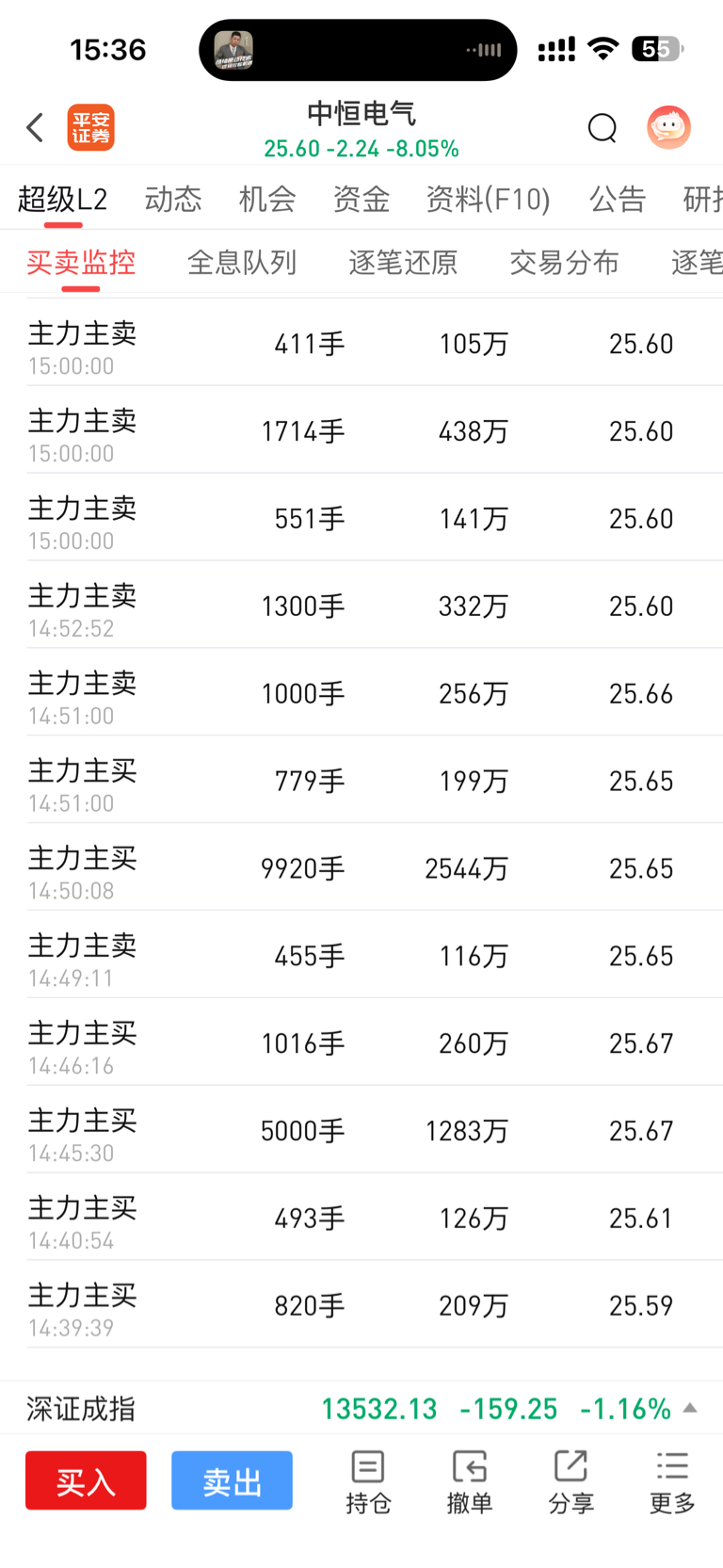 $中恒电气(SZ002364)$ 2点五十这两笔大单分时上怎么看不到?