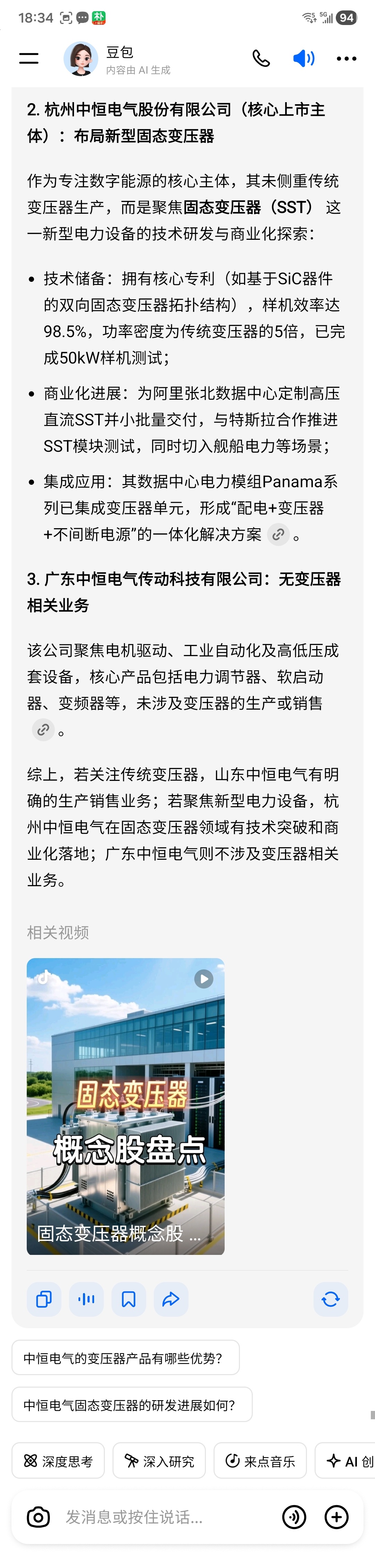 $中恒电气(SZ002364)$ 中恒电器SST变压器