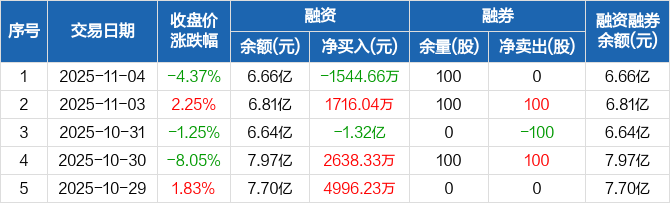 中恒电气:融资净偿还1544.66万元,融资余额6.66亿元(11-04)