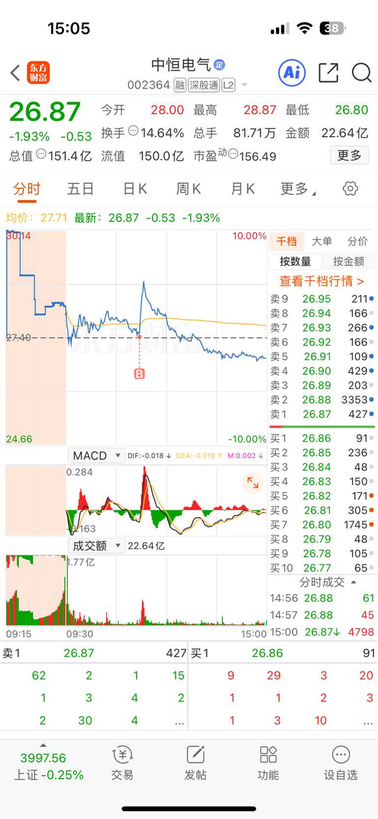 $中恒电气(SZ002364)$ 太恶心了吧,从五个点砸到水下2个点,上午白兴奋了
