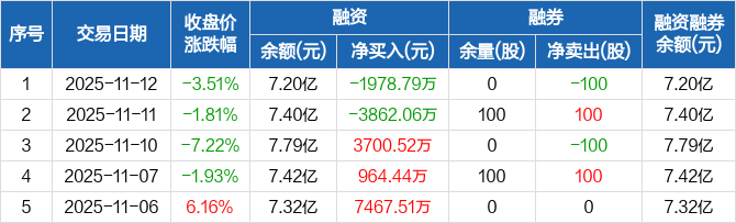 中恒电气:融资净偿还1978.79万元,融资余额7.2亿元(11-12)
