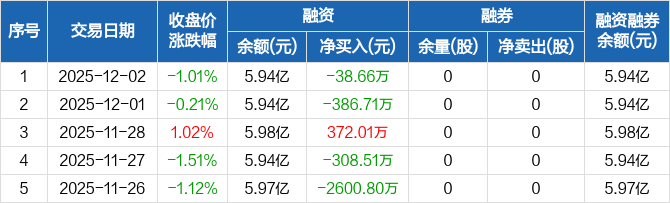 中恒电气:融资净偿还38.66万元,融资余额5.94亿元(12-02)