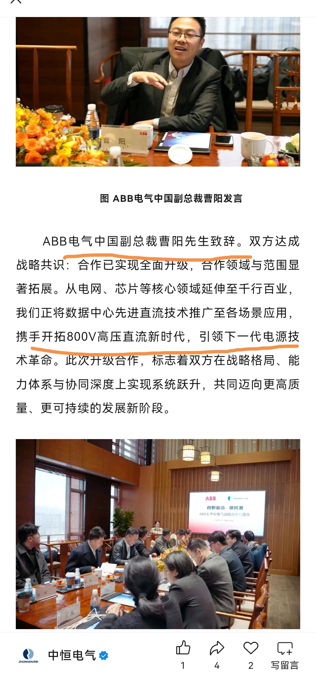 上周五盘后,12月12日 和美国数据中心电力设备大佬abb达成合作, 北美800v hvdc进展顺利!