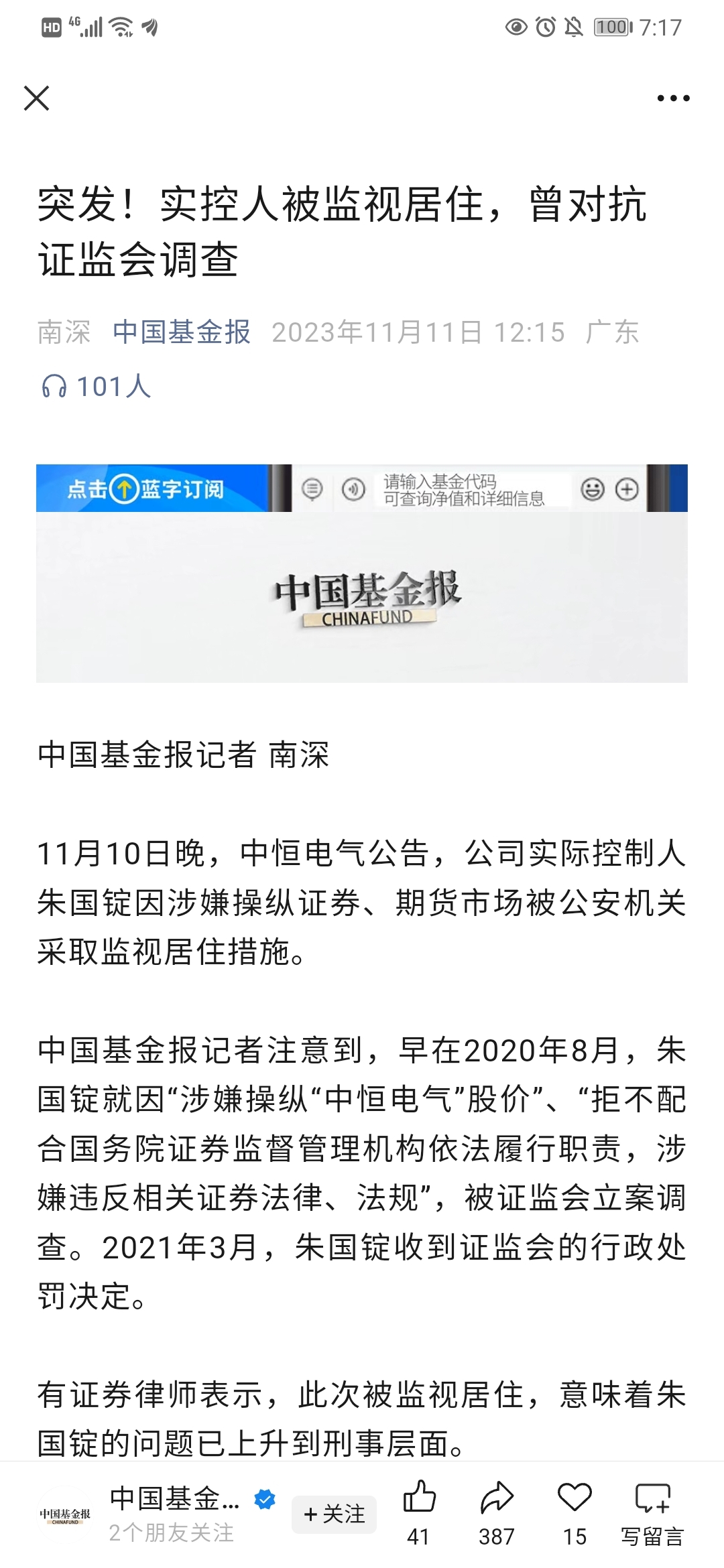 $中恒电气(SZ002364)$ 23年的事情,2月初取保候审的时候也是跌停,这是利空落地。不咋可能再大跌。