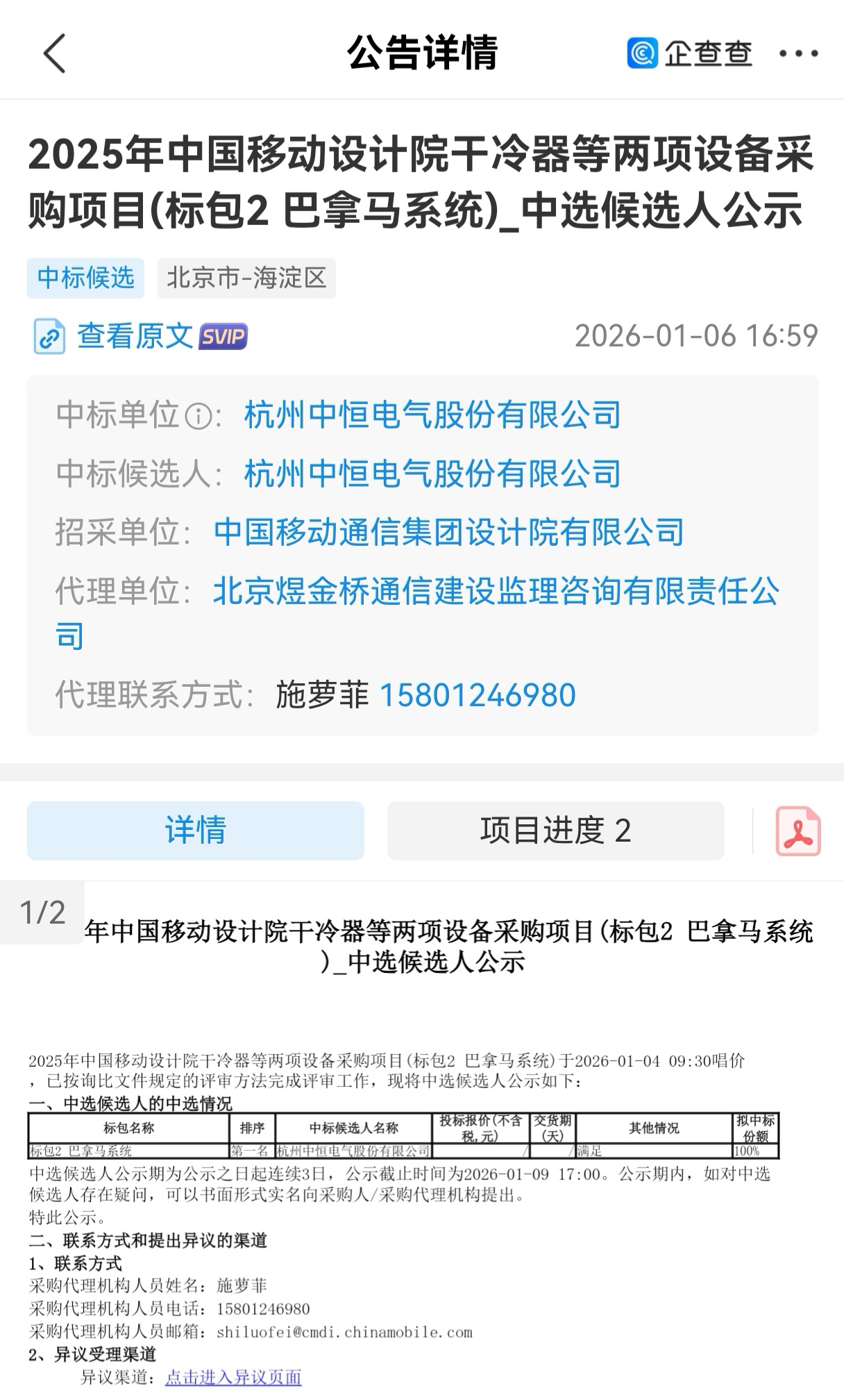 $中恒电气(SZ002364)$ 中标了395套巴拿马电源