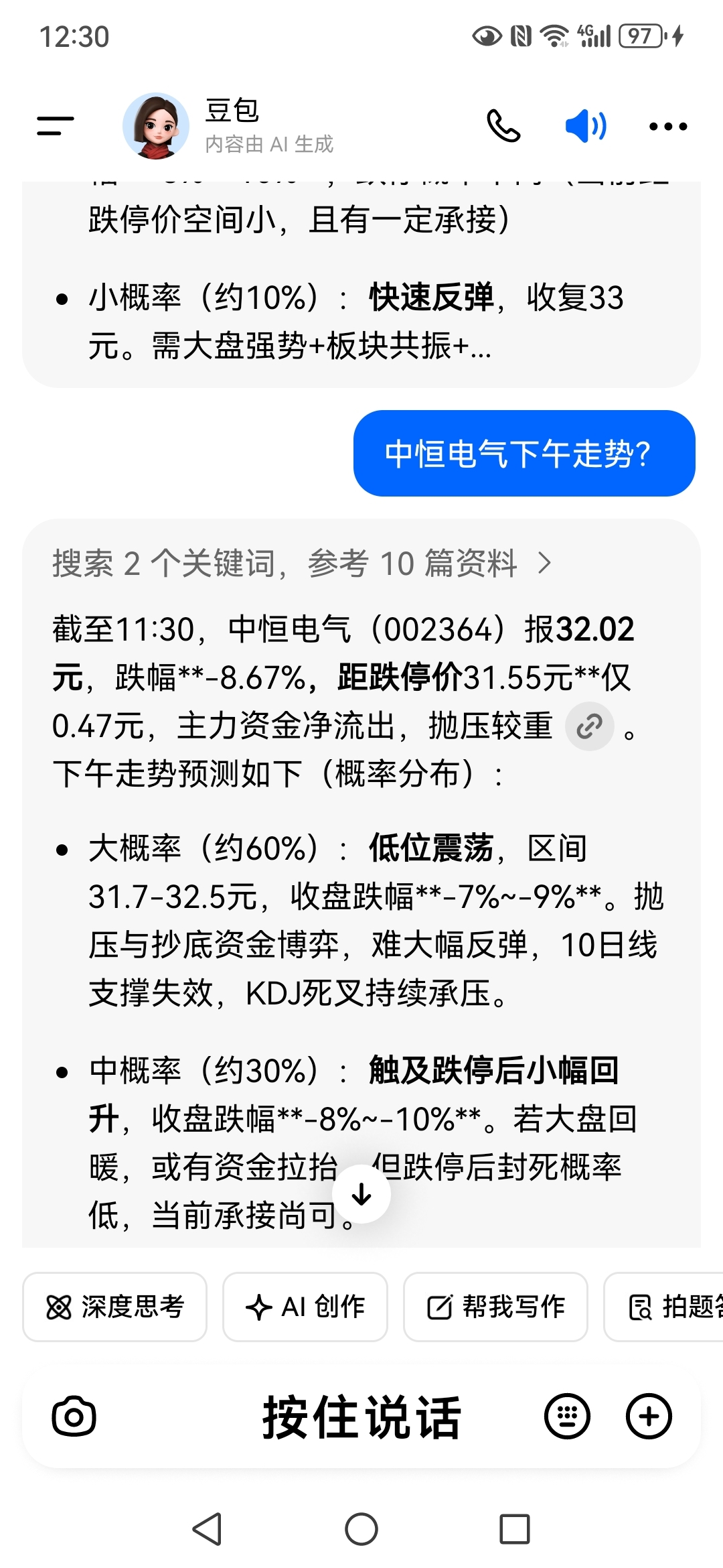 $中恒电气(SZ002364)$ 兄弟们儿,豆包说红不对说绿时蛮准的,实验多次,下午再一次来验!