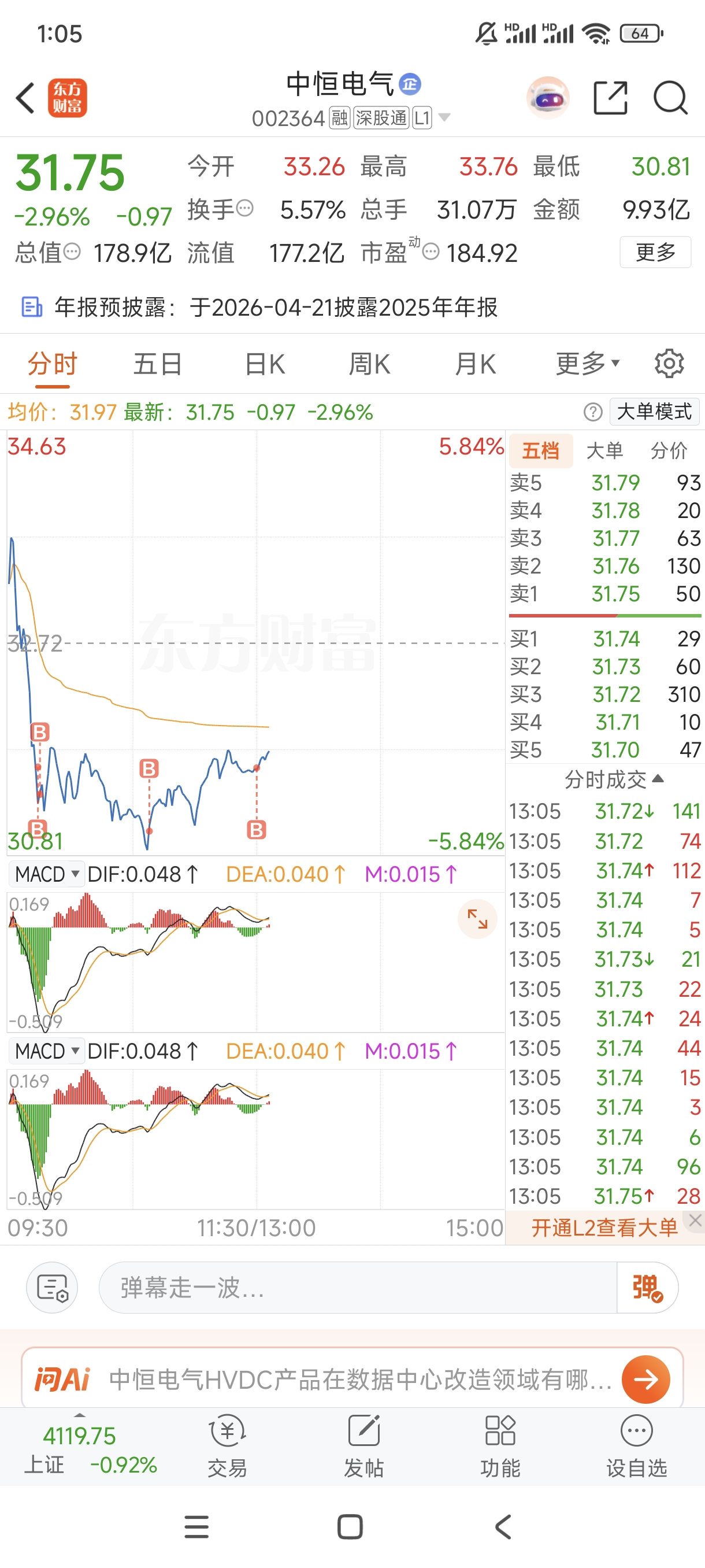 $中恒电气(SZ002364)$ 把东田微和福晶科技卖了加你,结果你还大跌