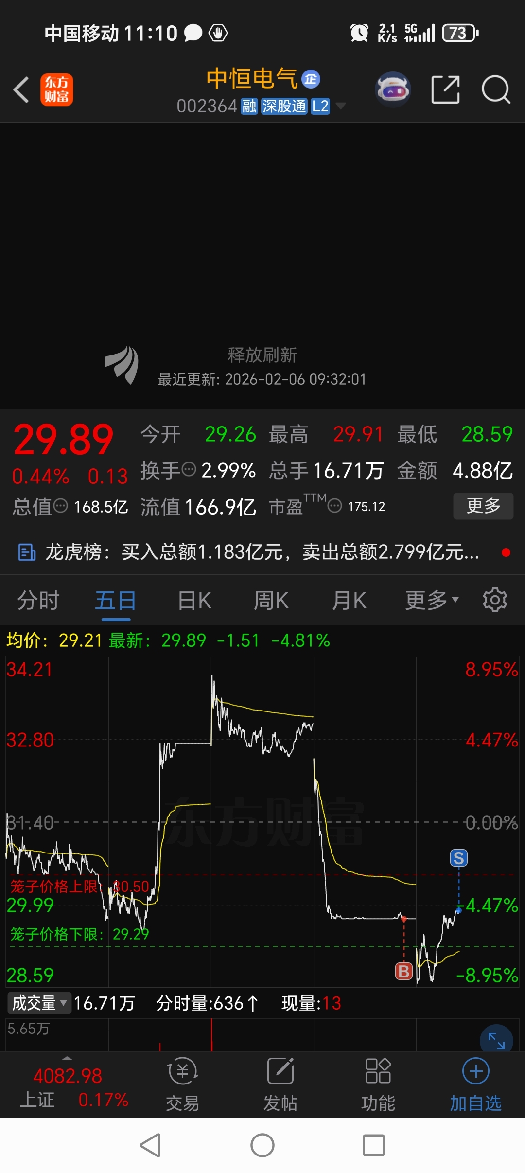 $中恒电气(SZ002364)$ 29.9出了,赚了个快餐