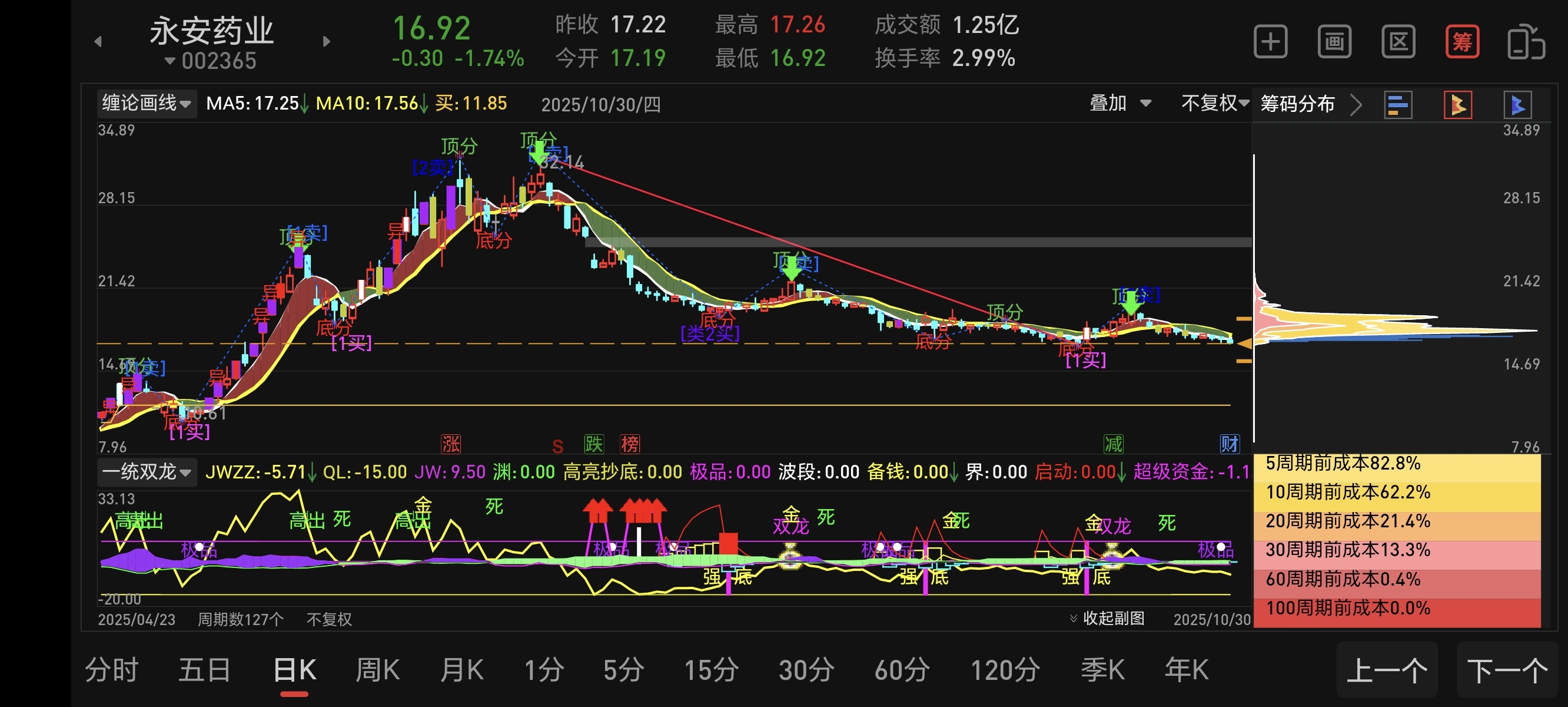 $永安药业(SZ002365)$ 还没跌到位了,还需要耐心等待白色波段买点的信号,大家不要着急啊!