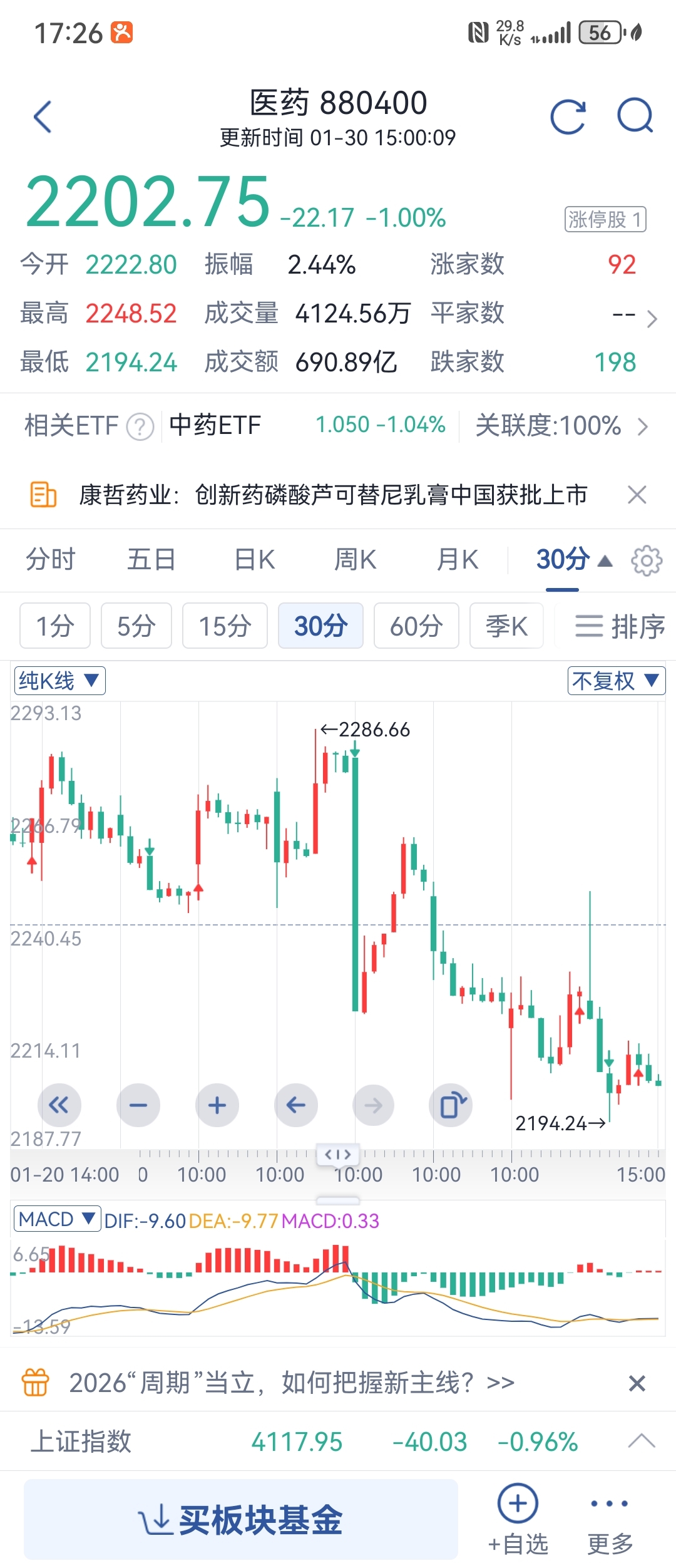 你们不看医疗板块大盘吗?都跟大盘走的
