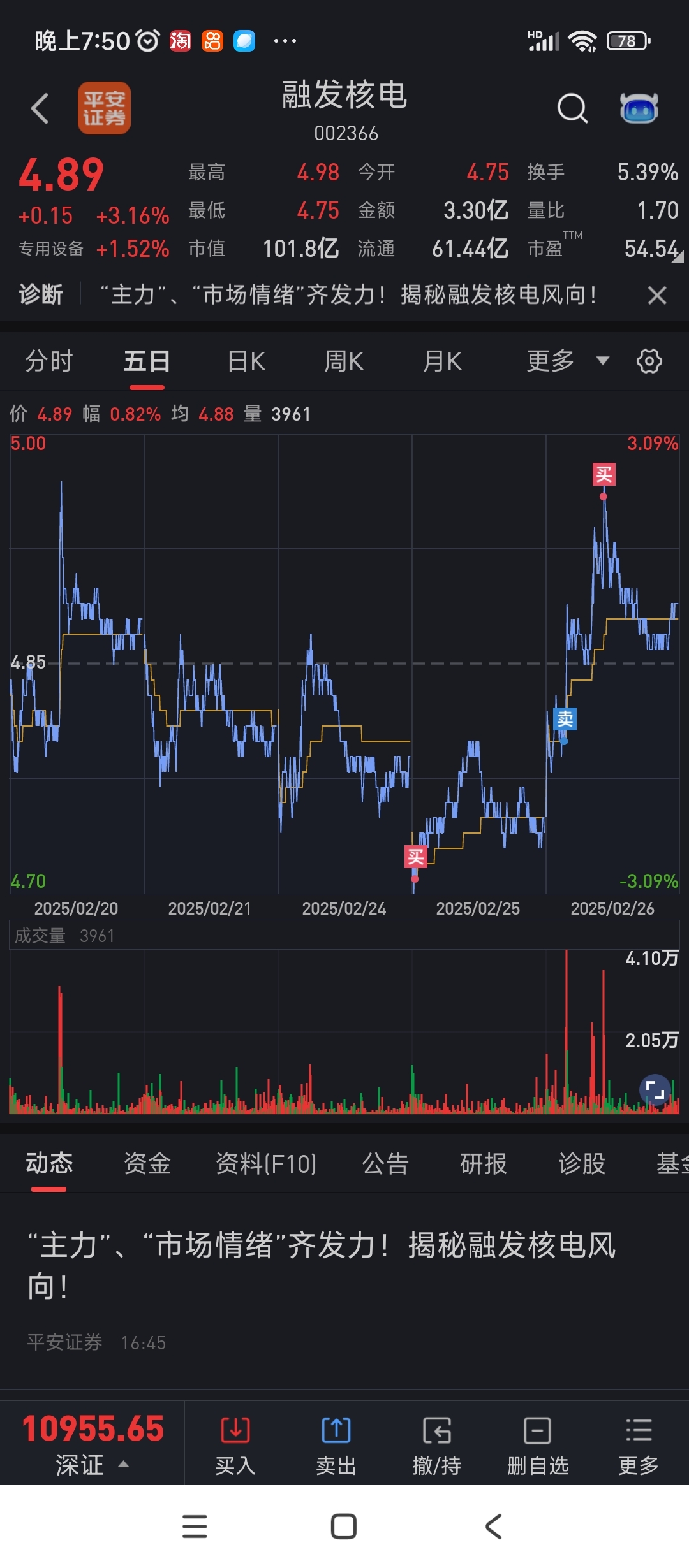 $融发核电(SZ002366)$ 卖了又追高