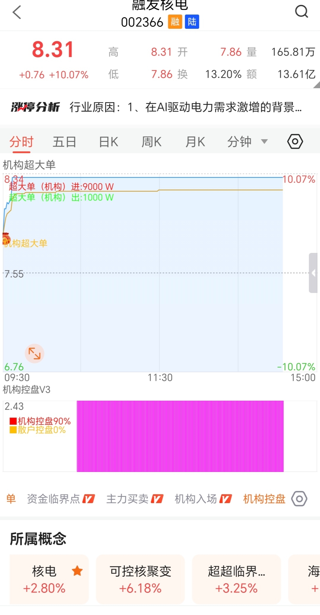 $融发核电(SZ002366)$ 机构全来了 真金白银 散户跑完了