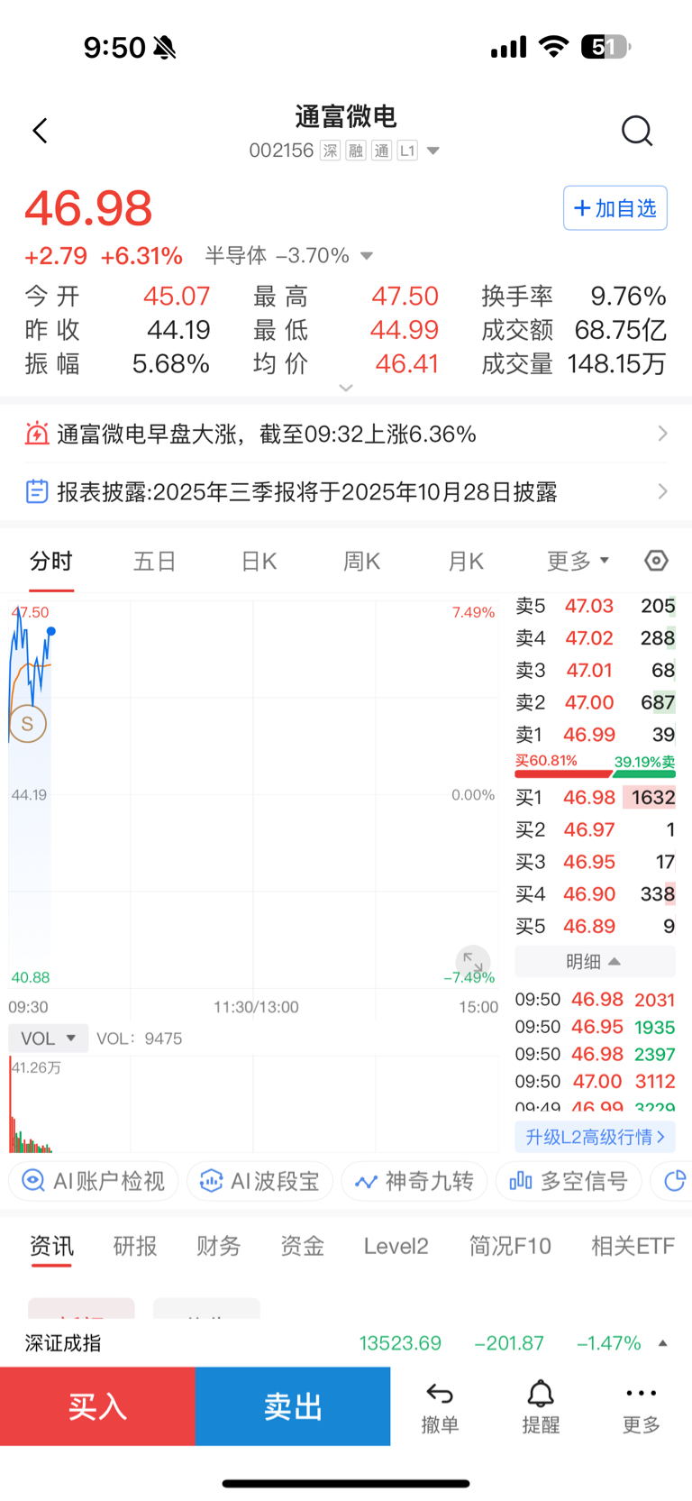 $融发核电(SZ002366)$ $通富微电(SZ002156)$ 46.2卖掉tfwd,8.52买入rfhd