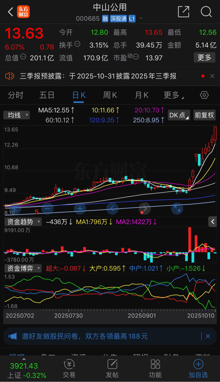 看看我9/26号共享低吸机会的中山公用 000685走出5连阳趋势,强不强大家说了算,有没有把握住机会的朋友,恭喜恭喜了
