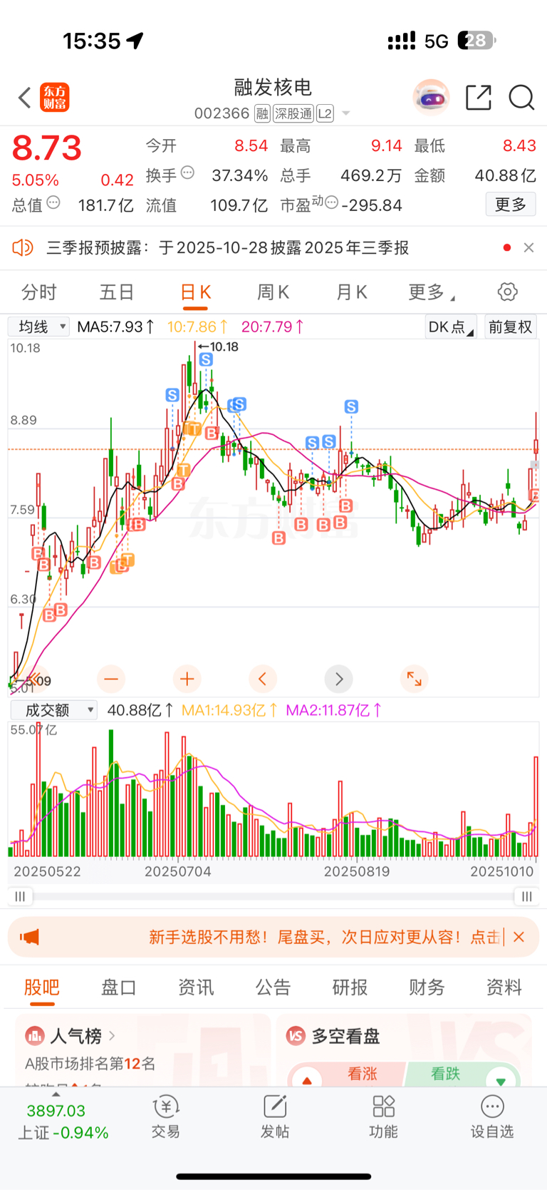 $融发核电(SZ002366)$ 发哥,岗一站就是三个月,你知道这个三个月我怎么度过的吗?下周我就跑,