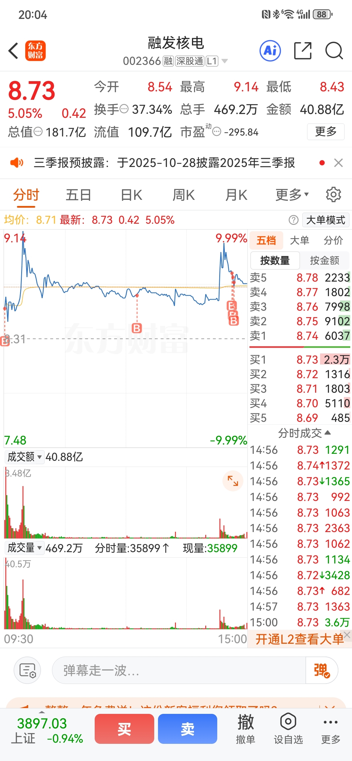 $融发核电(SZ002366)$