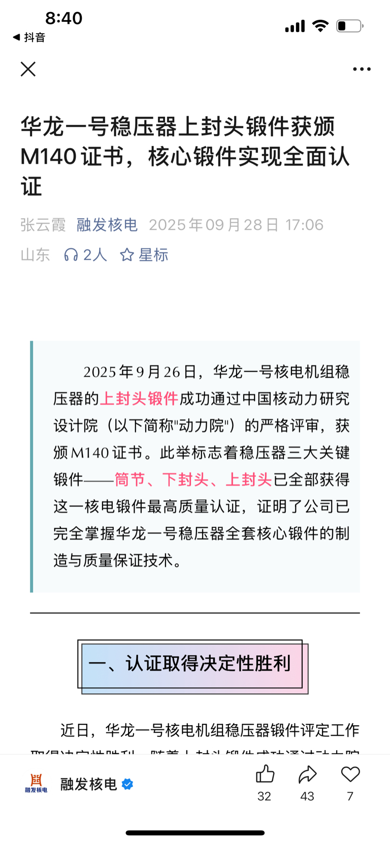 $融发核电(SZ002366)$ 华龙一号,深度参与