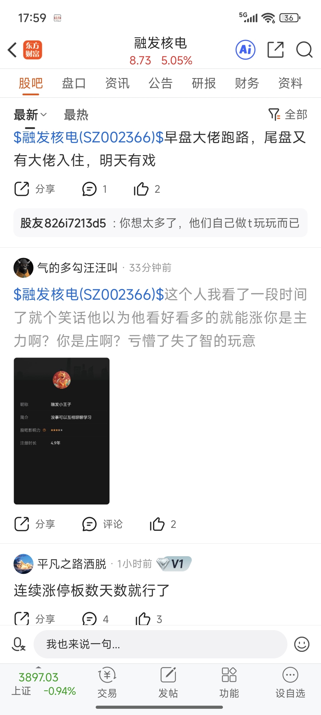 $融发核电(SZ002366)$ 纯笑话,明天见分晓,见不得别人赚钱的,被问候一家人。智商不够,无脑唱空的,活该一辈子亏血汗钱
