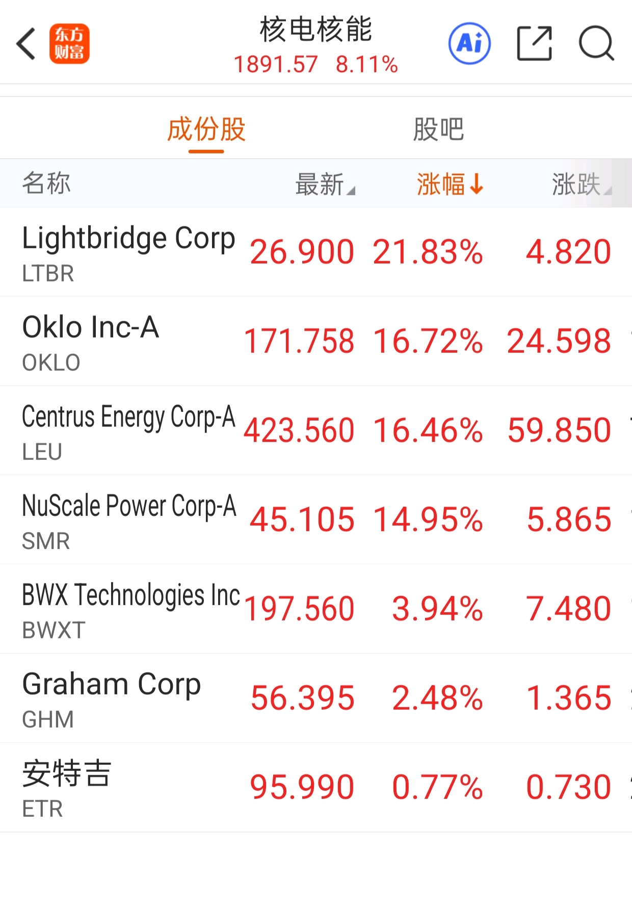 $融发核电(SZ002366)$ 美股核电板块暴涨