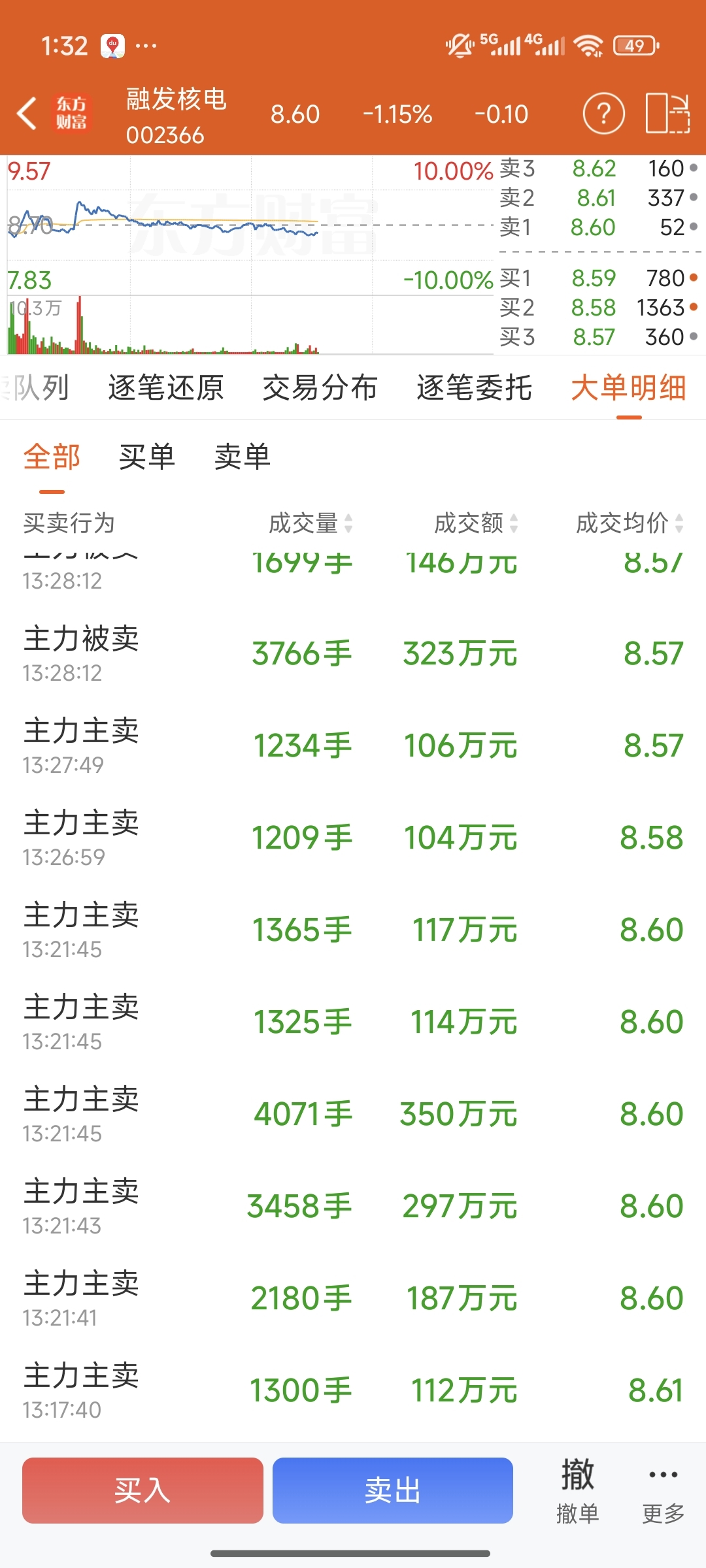 $融发核电(SZ002366)$ 一直在卖呀,怎么玩