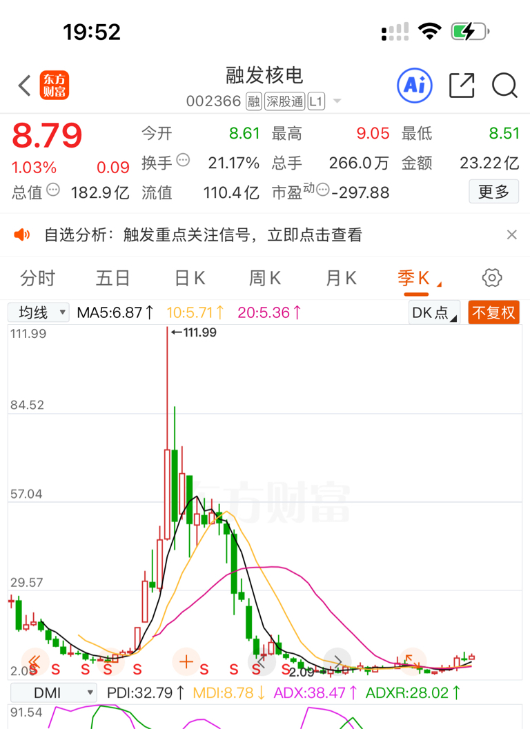 $融发核电(SZ002366)$ 历史高位111,这波能过吗