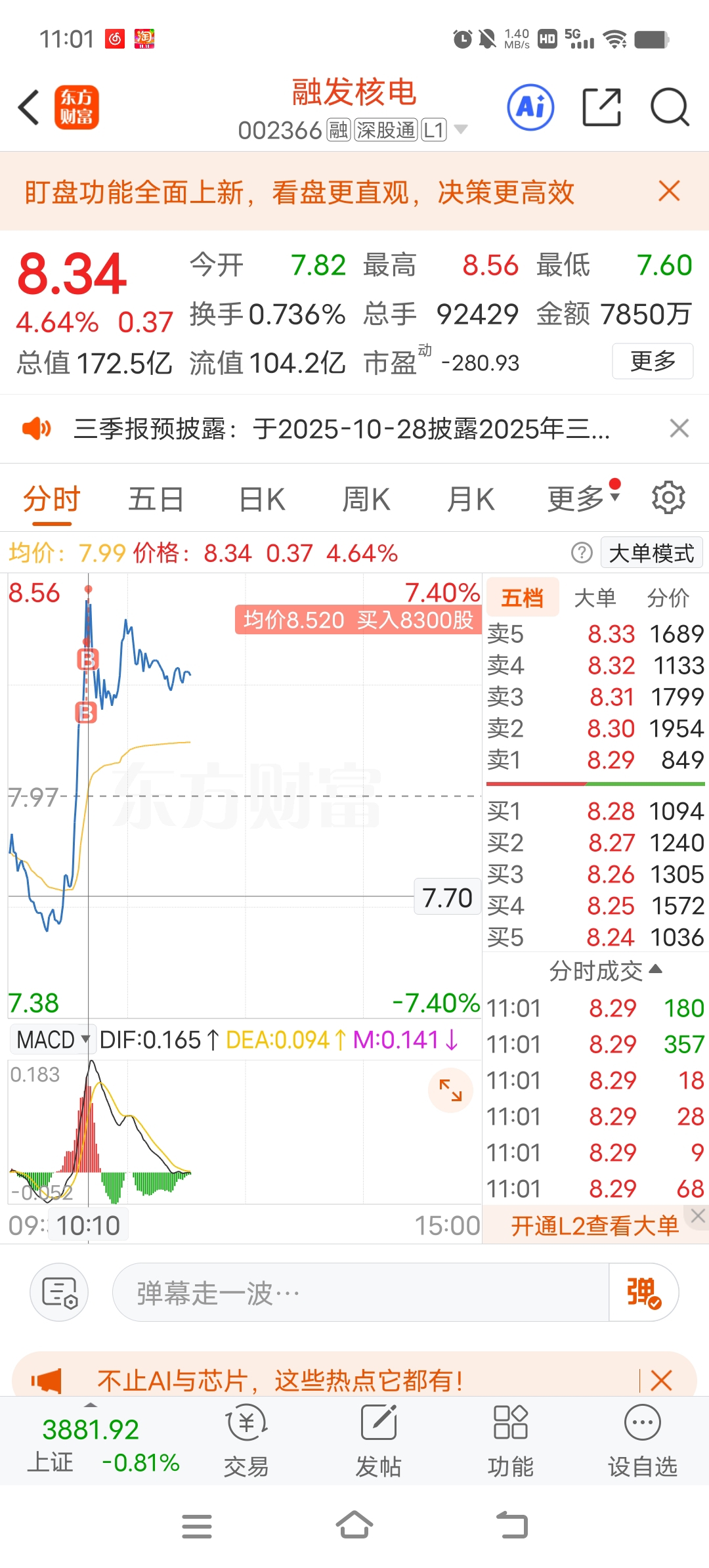 $融发核电(SZ002366)$ 两万股小仓位介入