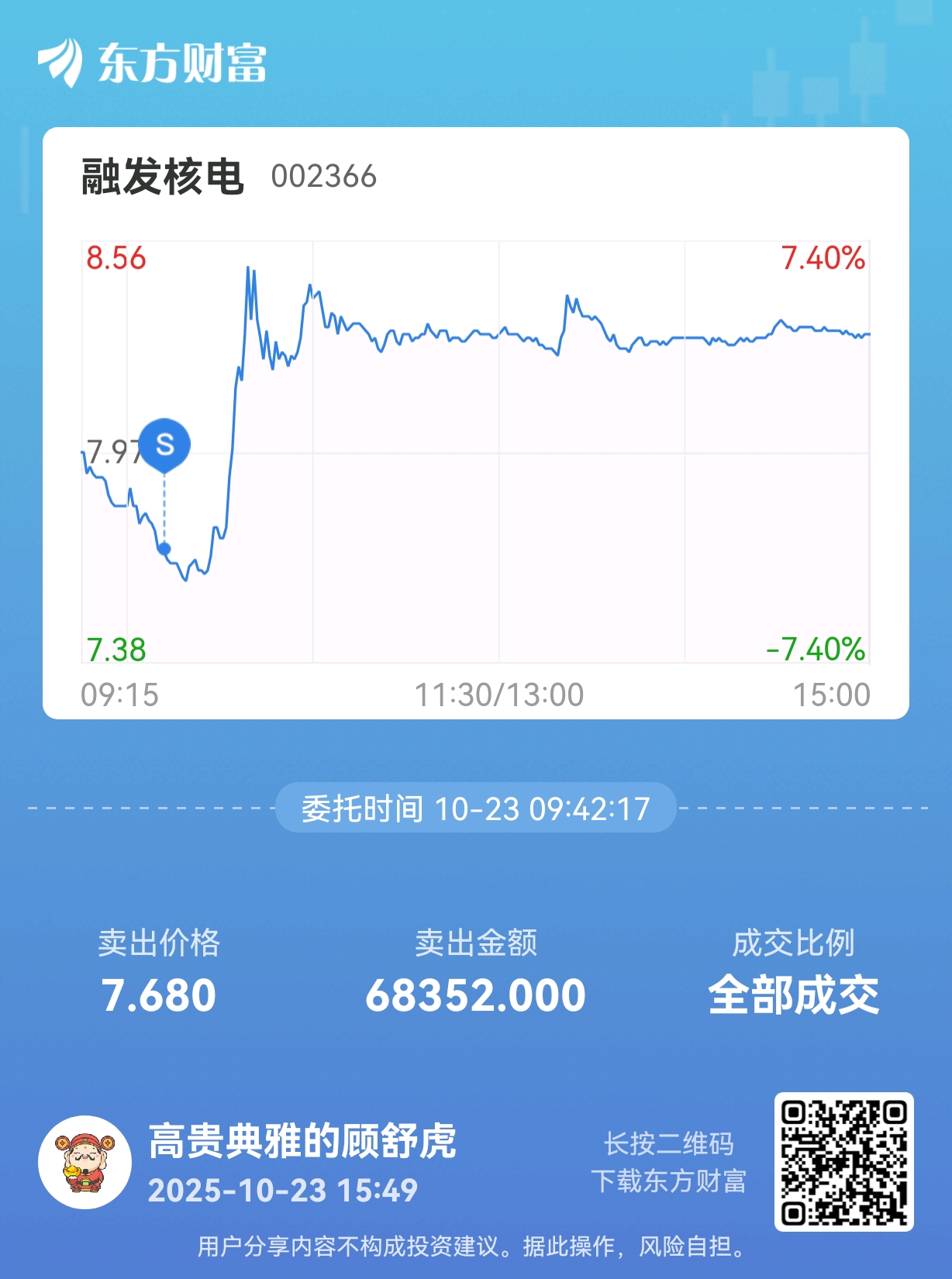 温馨提示: 1.根据《证券法》规定,禁止编造、传播虚假信息或者误导性信息,扰乱证券市场;2.用户在本社区发表的所有资料、言论等仅代表个人观点,与本网站立场无关,不对您构成任何投资建议。用户应基于自己的独立判断,自行决定证券投资并承担相应风险。《东方财富社区管理规定》